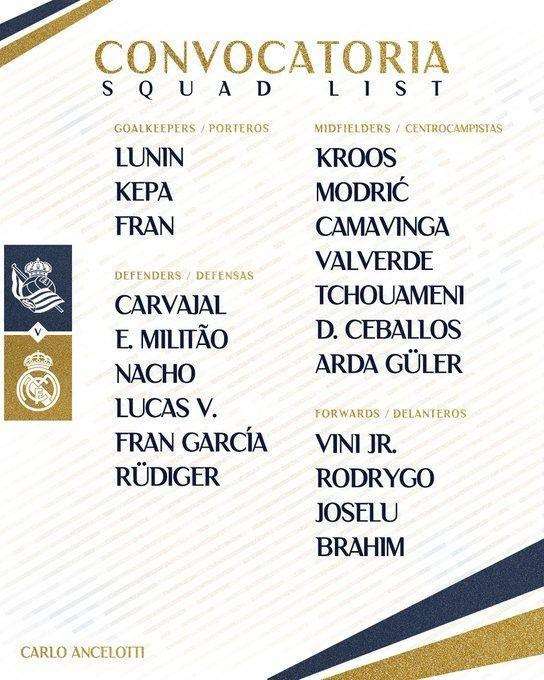 皇马公布战黄社大名单:贝林厄姆缺席 罗德里戈在列