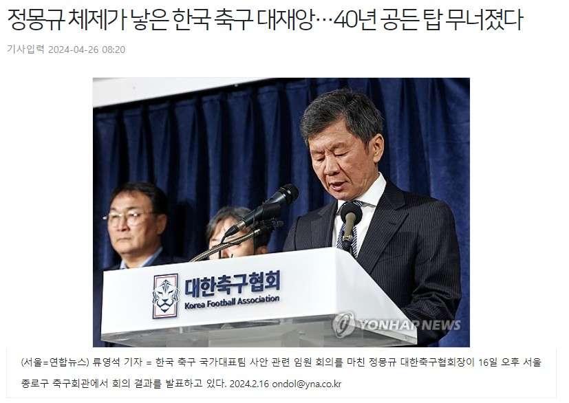 韩媒:韩国足球灾难时刻到来 郑梦奎一手制造国家队国奥的接连悲剧