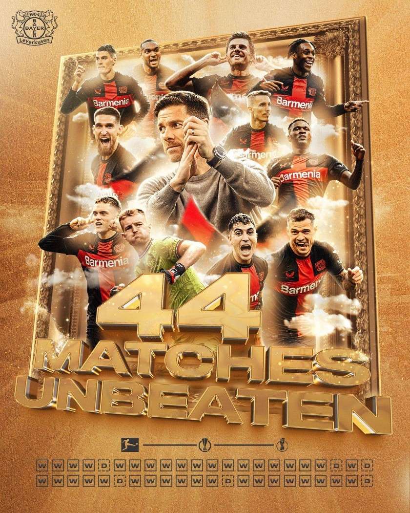 谁与争锋?阿隆索率领勒沃库森豪取44场不败 有望冲击三冠王