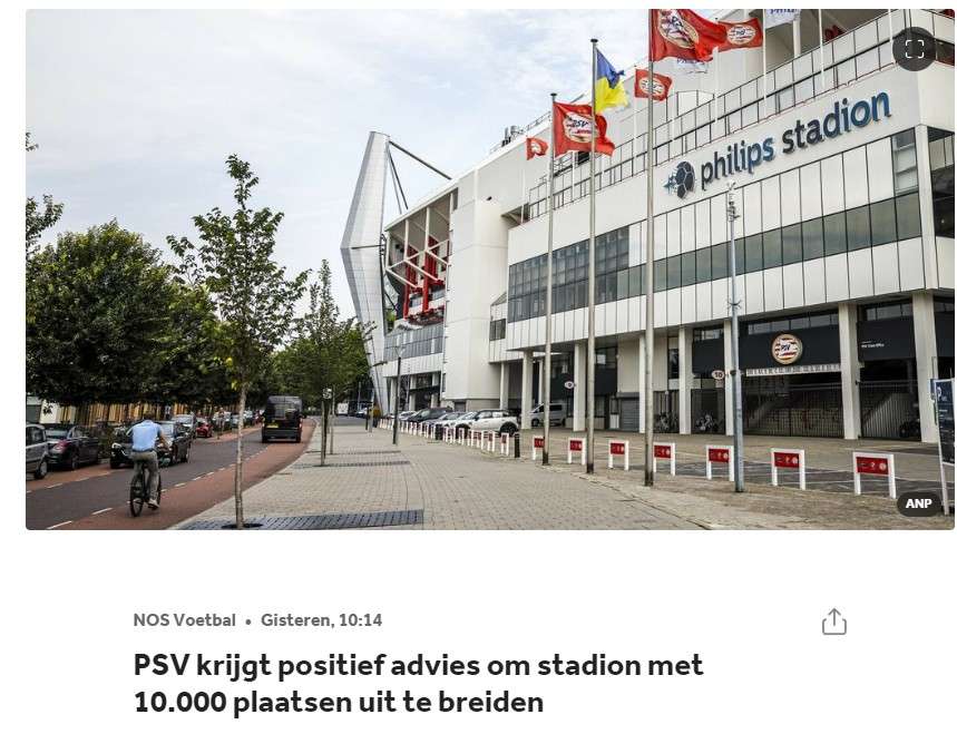 埃因霍温准备将主场座位增加一万个 到2040年观众数预计增加10