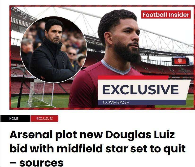 英媒:阿森纳和巴萨将争夺维拉中场道格拉斯-路易斯
