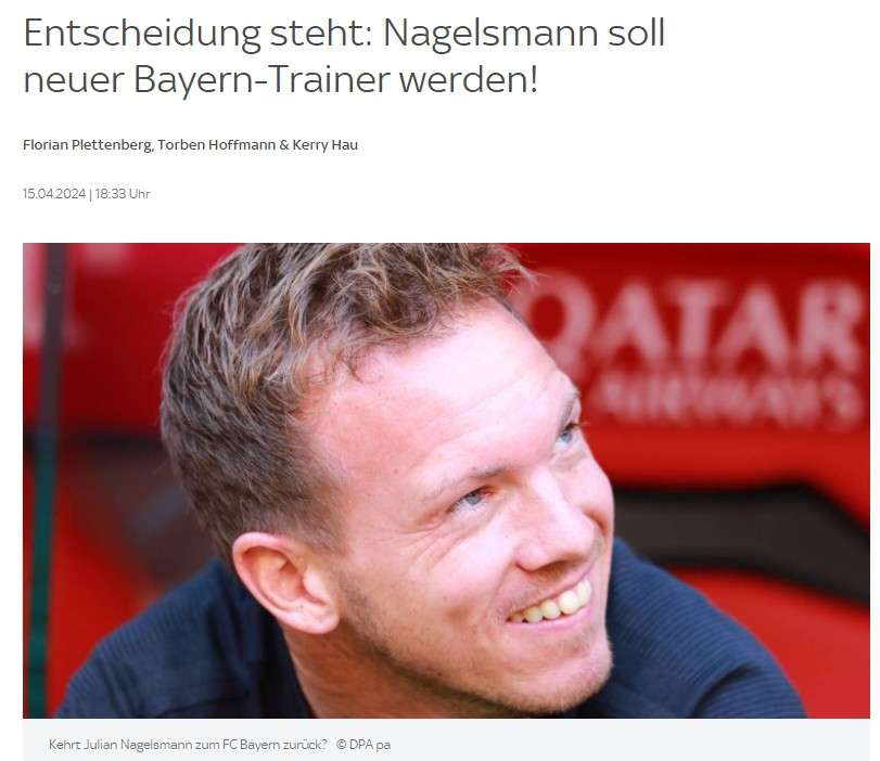 德天空独家:拜仁已经决定将纳格尔斯曼作为继任主帅