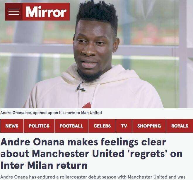 奥纳纳:国米是个温馨的大家庭 但我不后悔加盟曼联