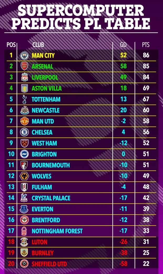 超级计算机预测英超大结局:曼城1分优势夺冠 森林惊险完成保级