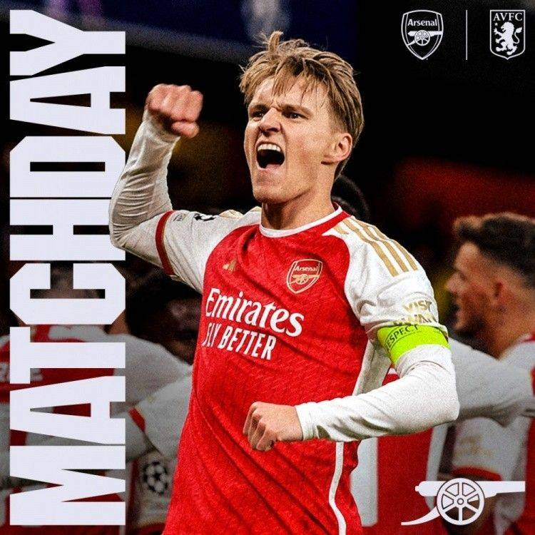 阿森纳战维拉赛前海报:厄德高振臂高呼
