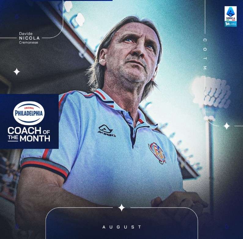 升班马两连胜!官方:克雷莫纳主帅尼古拉当选意甲8月最佳教练