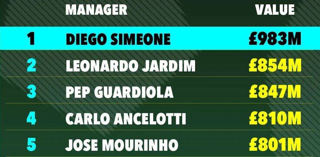 太阳报盘点通过卖人为俱乐部创收最多的主教练TOP5:西蒙尼第1