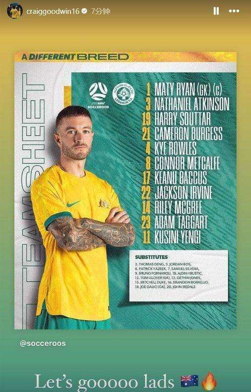 无法登场仍心系球队!古德温社媒发布视频为澳大利亚加油