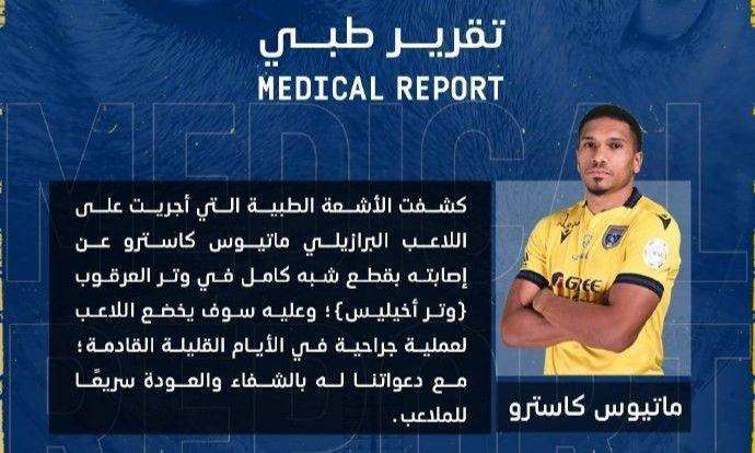 布赖代合作官方:卡斯特罗跟腱断裂 赛季报销