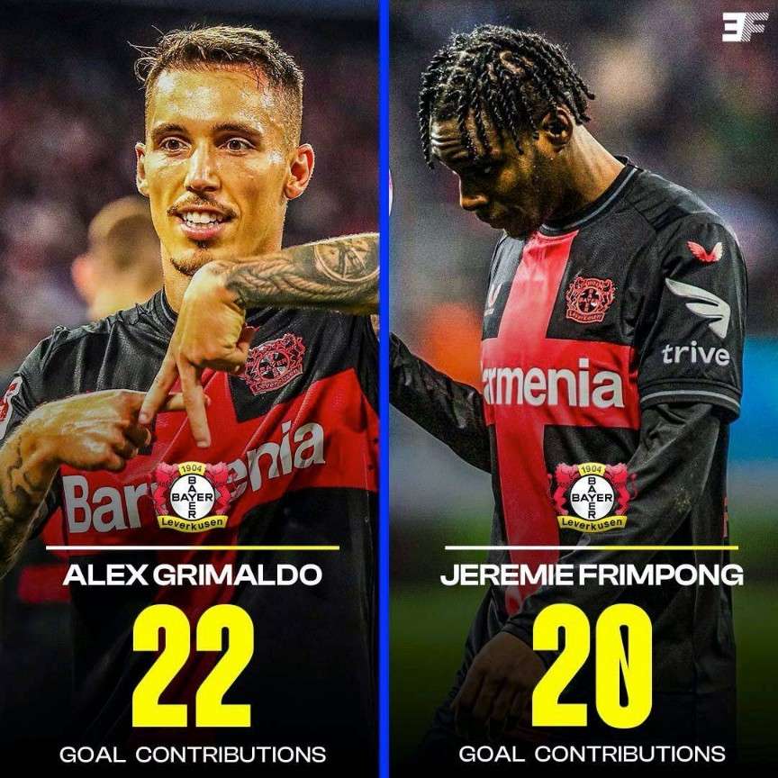 参与42球!欧洲最犀利边路组合是谁?助力药厂34场不败力压拜仁