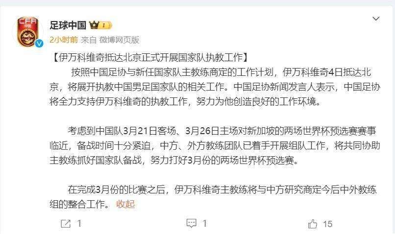 国足新帅伊万抵达北京 着手组队工作备战世预赛