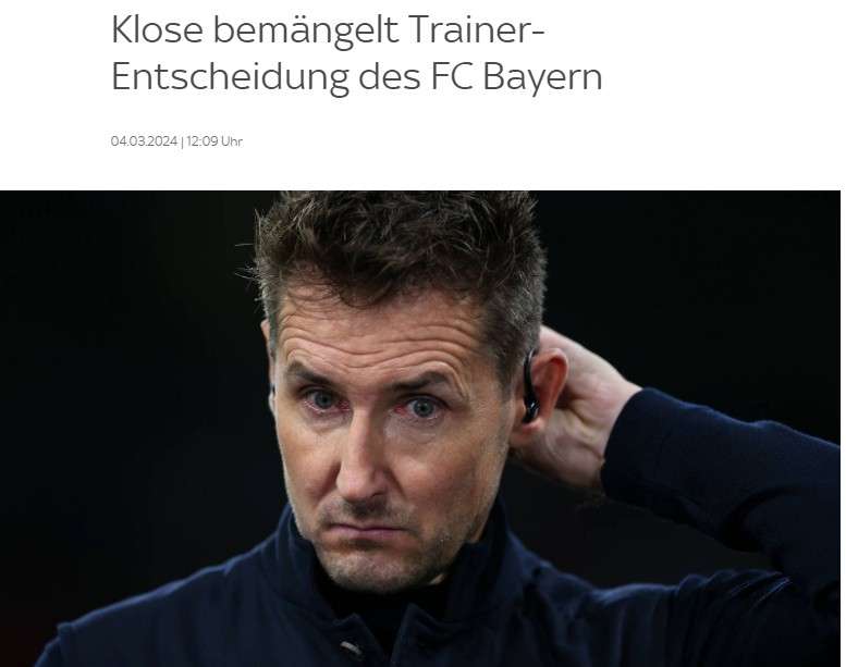 克洛泽:拜仁应该对主教练多一点耐心 频繁换帅容易丢掉球队的DNA