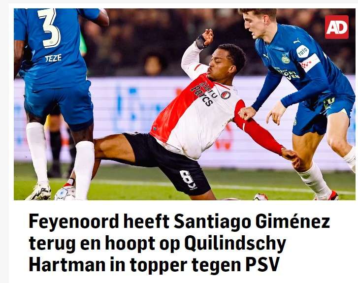 荷媒:费耶诺德锋霸希门尼斯伤愈回归 有望出战埃因霍温
