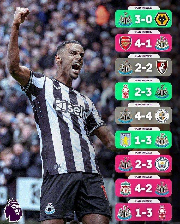 对攻不能停!纽卡近9轮英超联赛合计产生44球 场均近5球
