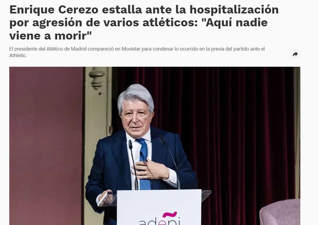 马竞主席批评国王杯球迷骚乱事件:大家来这里看球不是为了寻死的