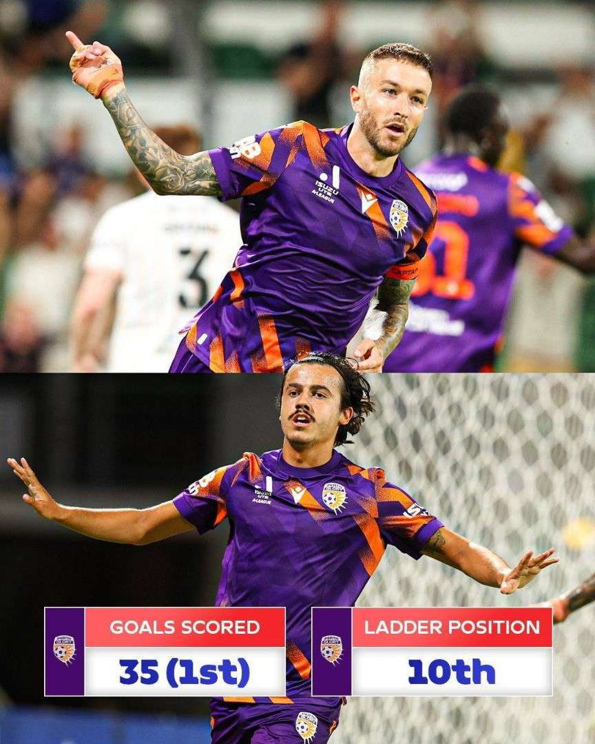 珀斯光荣本赛季总进球数位列澳超第一 积分排名却位列倒数第三