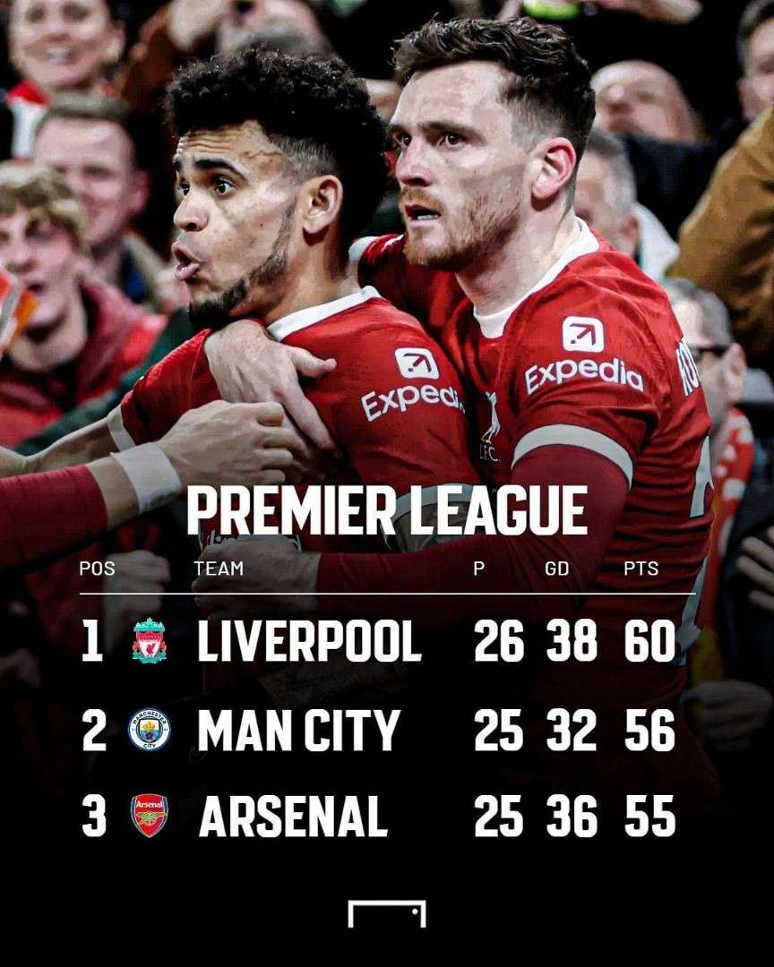 优势扩大!多赛一场的红军将领先优势扩大到4分 蓝月亮枪手紧随其后