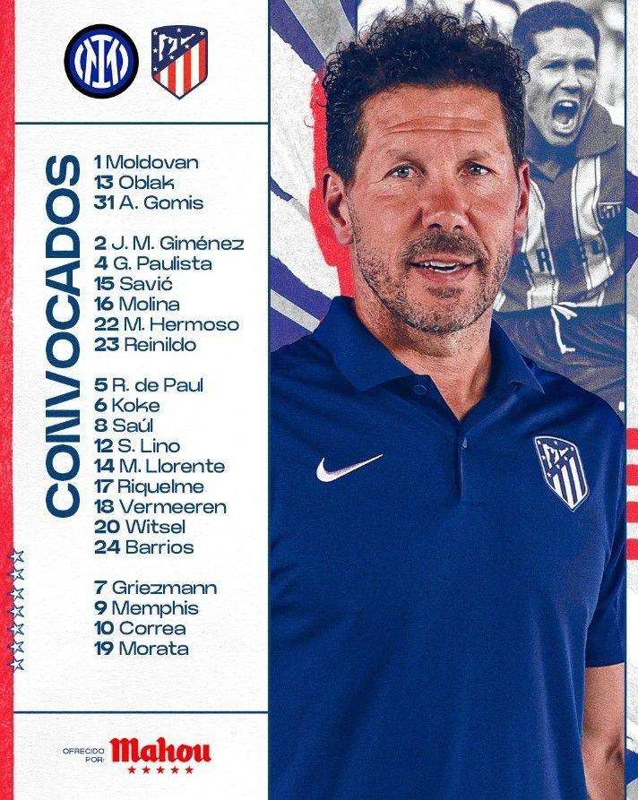 马竞欧冠大名单出炉:格子领衔锋线 莫拉塔入选