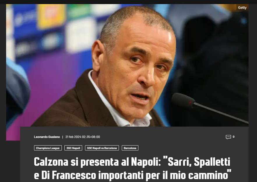 那不勒斯新帅卡尔佐纳:我们并不畏惧巴萨 球队足够强大只需重拾信念