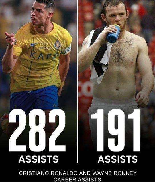 鲁尼称C罗只在意进球 媒体统计C罗生涯助攻数比鲁尼多了近100次