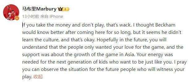 马布里批梅西缺阵:拿钱不上场很糟糕 我原以为贝克汉姆会懂这的文化