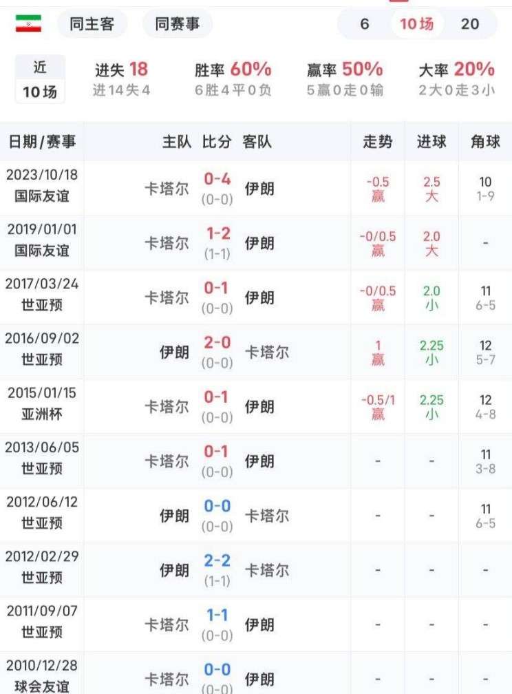 稳了?伊朗过去十次与卡塔尔交锋取得6胜4平不败战绩
