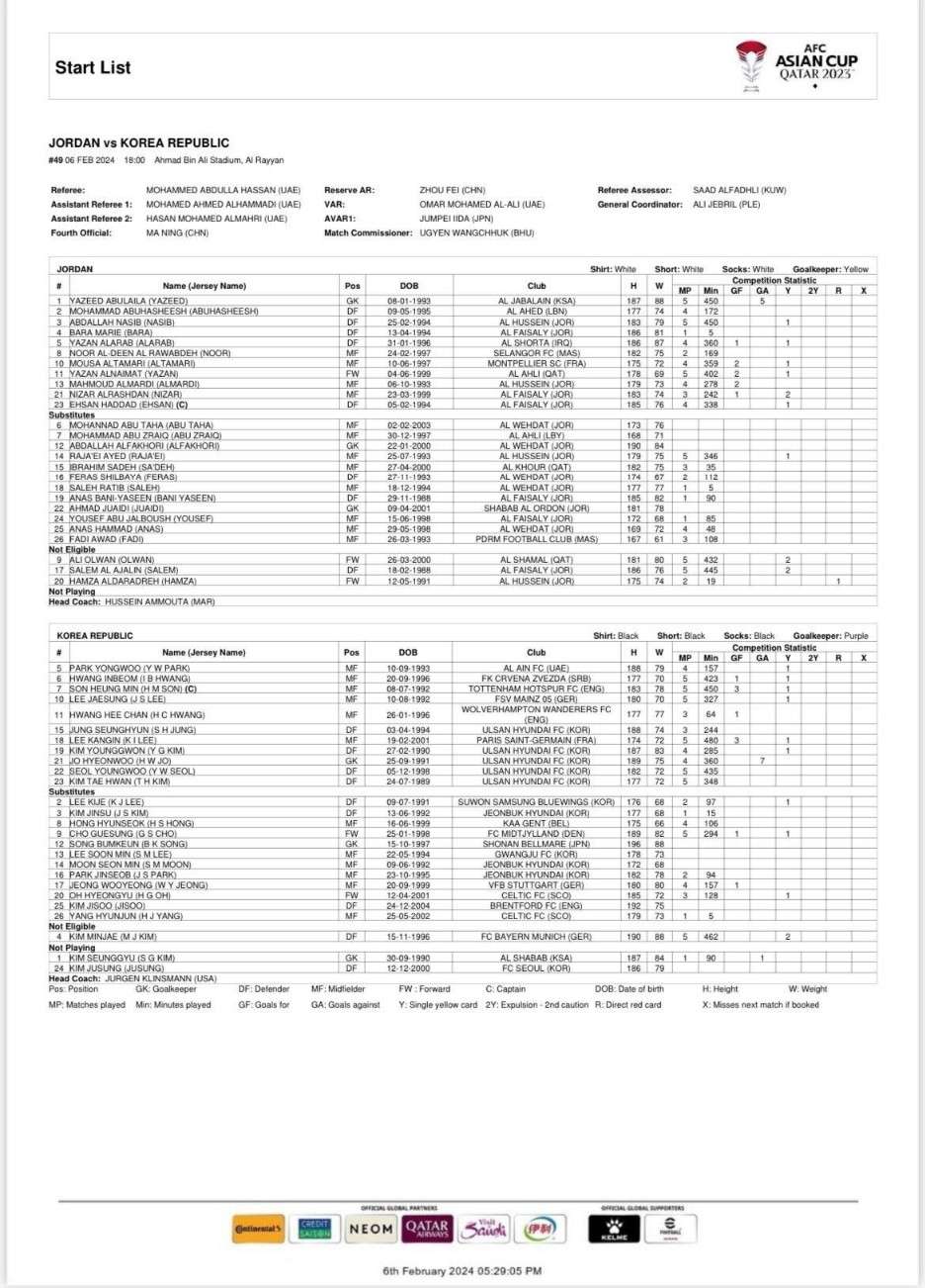 韩国vs约旦首发:孙兴慜、李刚仁领衔 金玟哉停赛