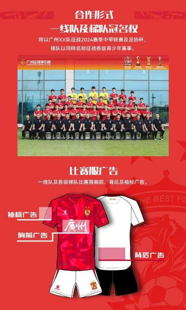 广州队官方2024赛季招商公告:征求球队冠名权&球衣广告