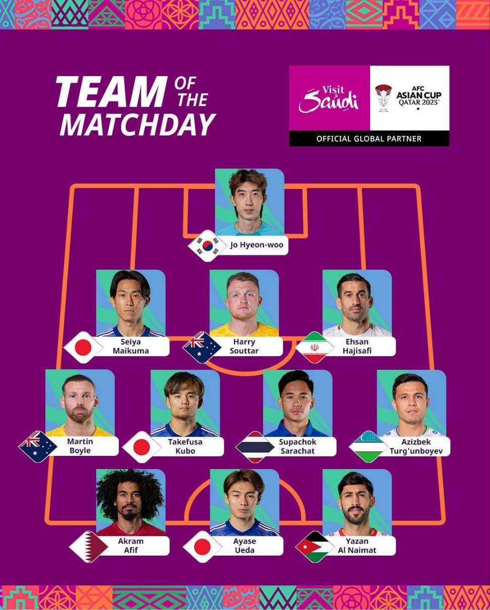 亚洲杯官方公布十六强最佳阵容:日本三人入选 韩国门神赵贤祐在列