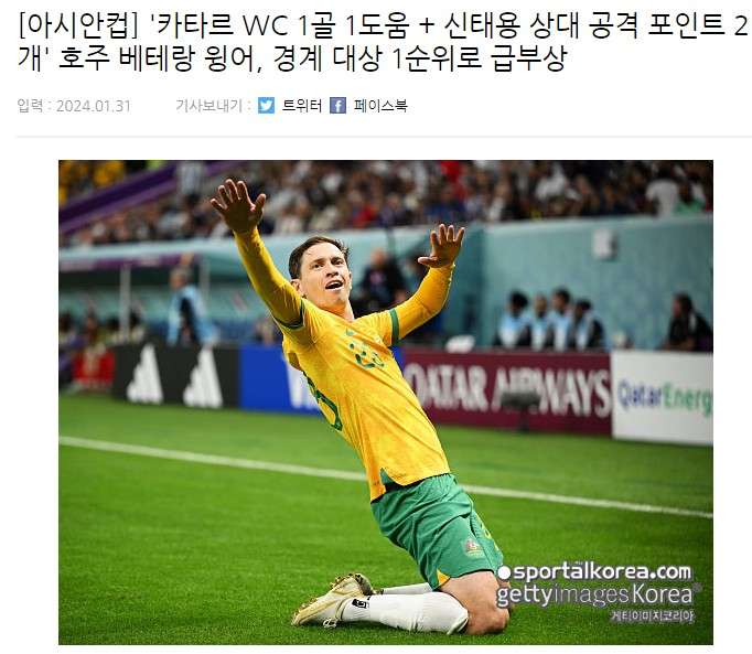 韩媒:澳大利亚阵中最危险的就是古德温!阻止了他晋级就不成问题了