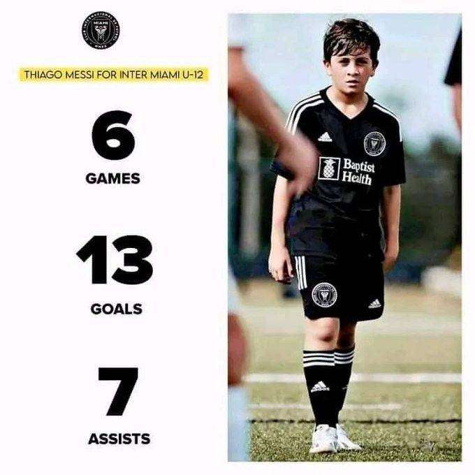 继承衣钵?梅西的儿子在迈阿密梯队中6场13球7助攻 狂造20球