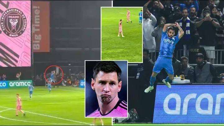 挑衅?利雅得新月前锋进球后 当着梅西的面模仿C罗的动作庆祝