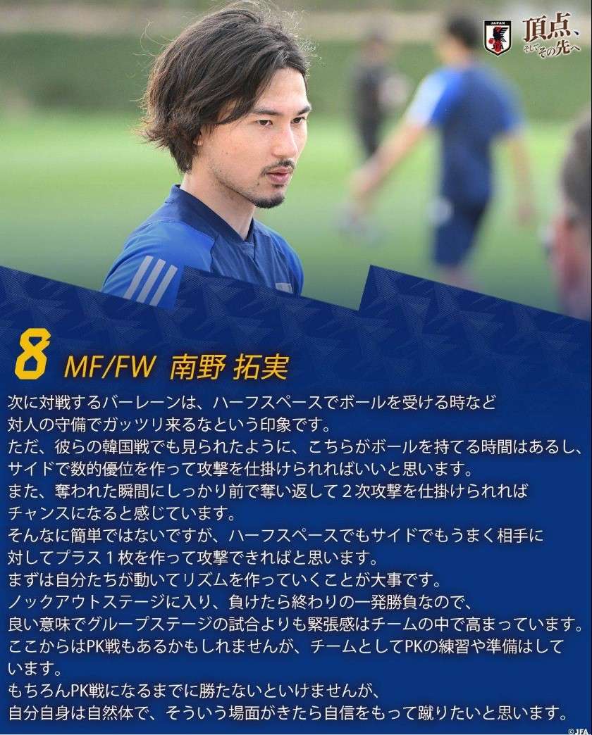 南野拓实:对阵巴林的比赛不会简单 已经做好点球大战的准备