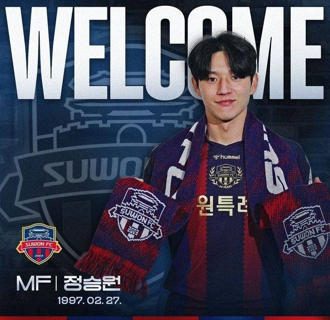 同城转会!官方:水原三星10号郑承源加盟水原FC