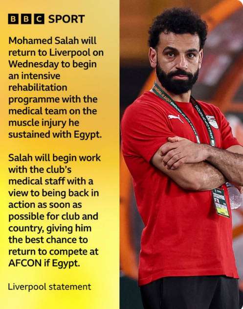 萨拉赫受伤提前离开了,目前回到了利物浦。本场埃及需要赢球出线,两
