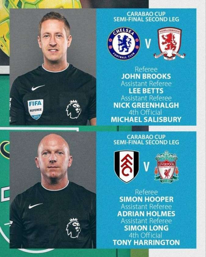 英联杯半决赛次回合裁判名单公布:胡珀执法富勒姆vs利物浦