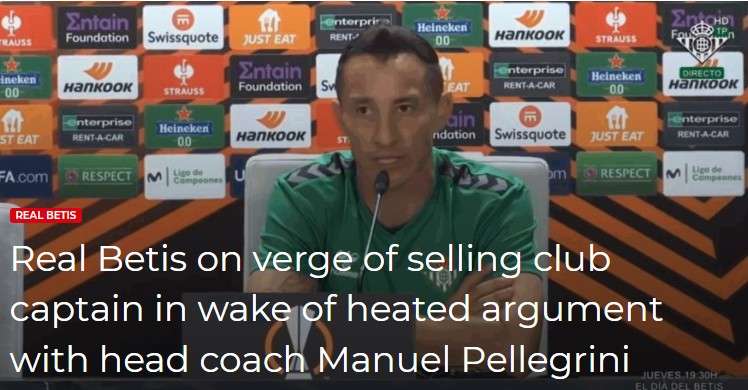 转会消息:贝蒂斯队长与主教练不合 即将加盟墨西超球队莱昂