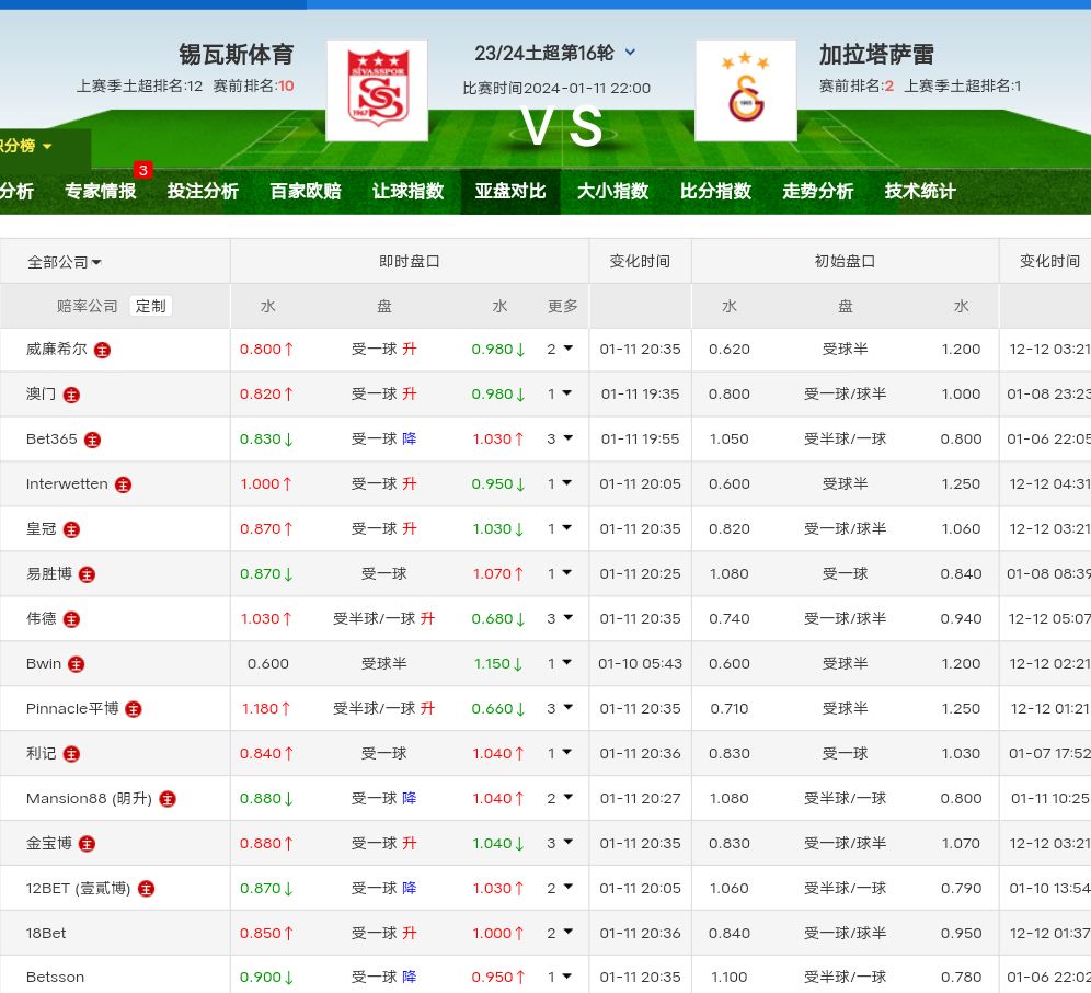 队史做客最深盘口,这场球的看点就是加拉塔能不能赢球保持争冠,从盘