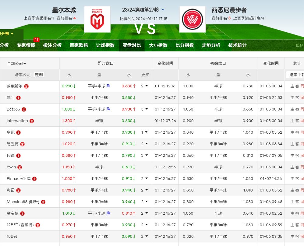 上一场澳假3-3,假不假?这场球盘口与上一场类似,墨尔本上一个主