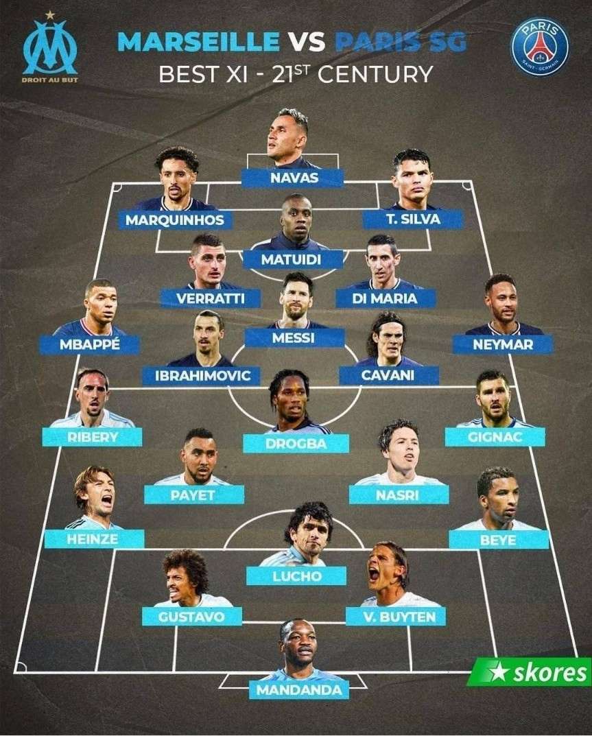 法媒评选巴黎马赛21世纪最佳阵容:梅西、姆巴佩领衔5前锋大战德罗