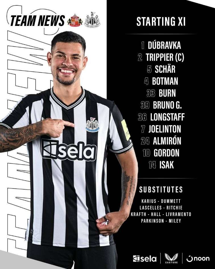 英足总杯首发:纽卡全主力出战 伊萨克、特里皮尔均在列