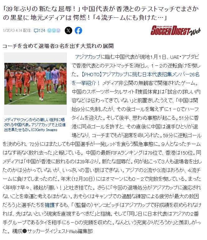 日媒:中国队还拿疲劳当借口吗?输4流球队扬科维奇帅位不保