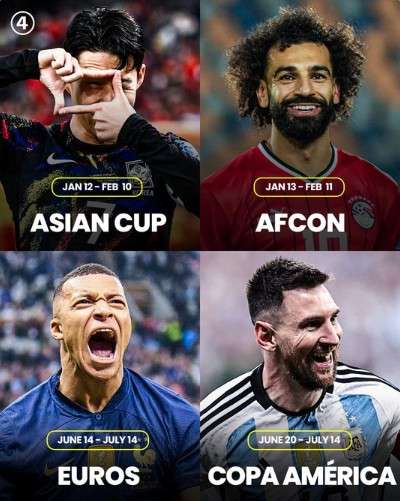 球迷狂喜!亚洲杯、非洲杯、美洲杯、欧洲杯齐聚2024年