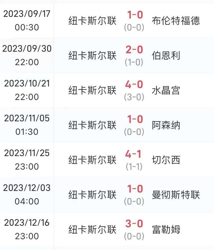 纽卡主场有多猛?一波7连胜+6场零封 防线牢固仅丢1球