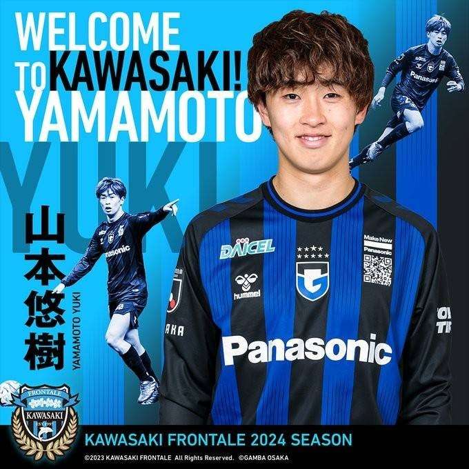 官方:川崎前锋签下大阪钢巴中场山本悠树