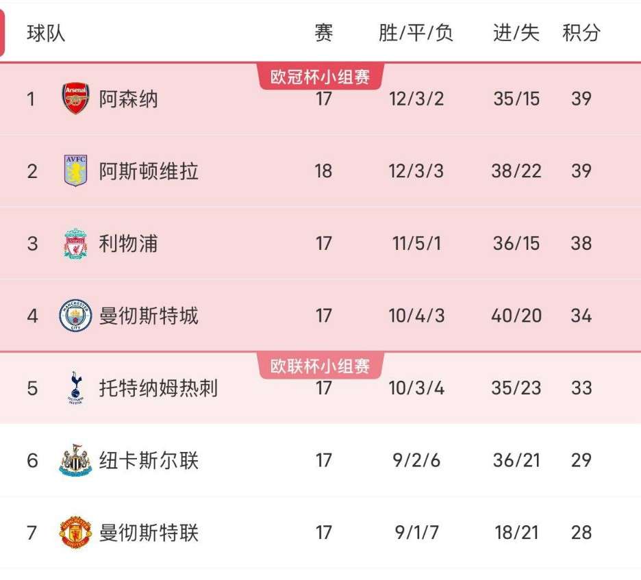 维拉绝平喜忧参半!积分反超利物浦暂列第二 主场15连胜遭终结