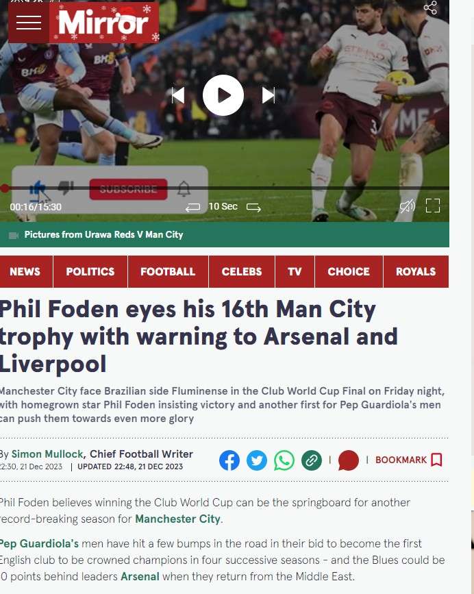 福登:世俱杯若加冕 能更好刺激曼城回英超冲击4连冠霸业
