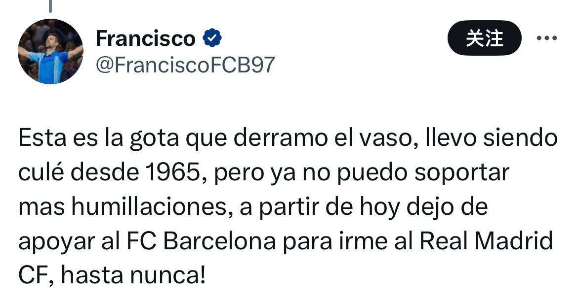 把老球迷逼急了!巴萨铁杆:受不了这种委屈 从今天起支持皇马