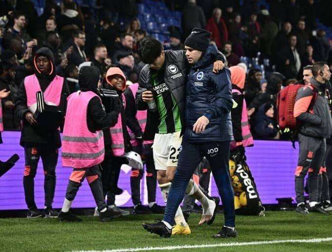 三笘薫因脚踝受伤被换下后拄拐离场 或将影响亚洲杯备战