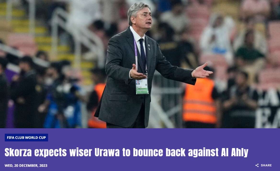 浦和主帅:踢不过曼城但我们必须拿捏开罗国民 用季军告别世俱杯